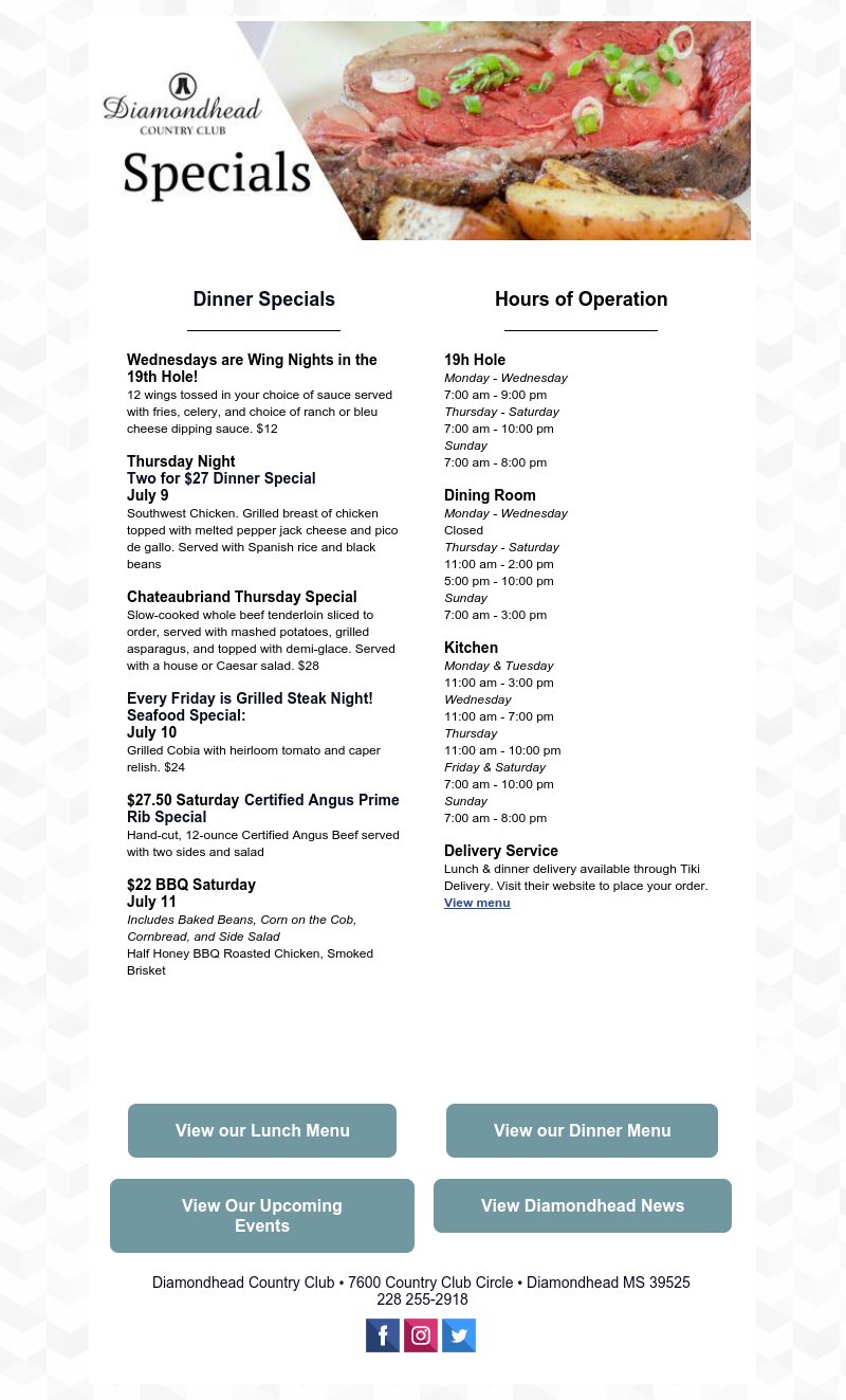 Get Menu Reviews Contact Location Phone Number Maps and more for Diamondhead Country Club. Members in good standing receive a discount on. Dinner Sit Down Menu.